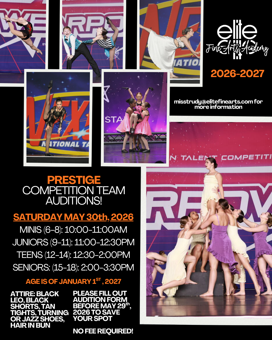 At Elite Fine Arts Academy, we offer a full schedule of recreational and competitive dance classes. Our Prestige competition team trains dedicated dancers to perform and compete at the highest level, while our recreational classes provide a fun, supportive enviroment for dancers of all ages and skill levels.